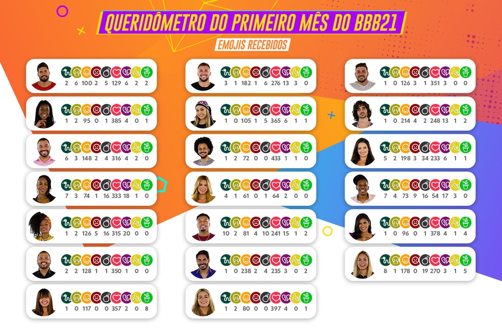 Queridometro Saiba Quais Emojis Os Participantes Colecionam No Primeiro Mes Do Bbb21 Feed Bbb Gshow